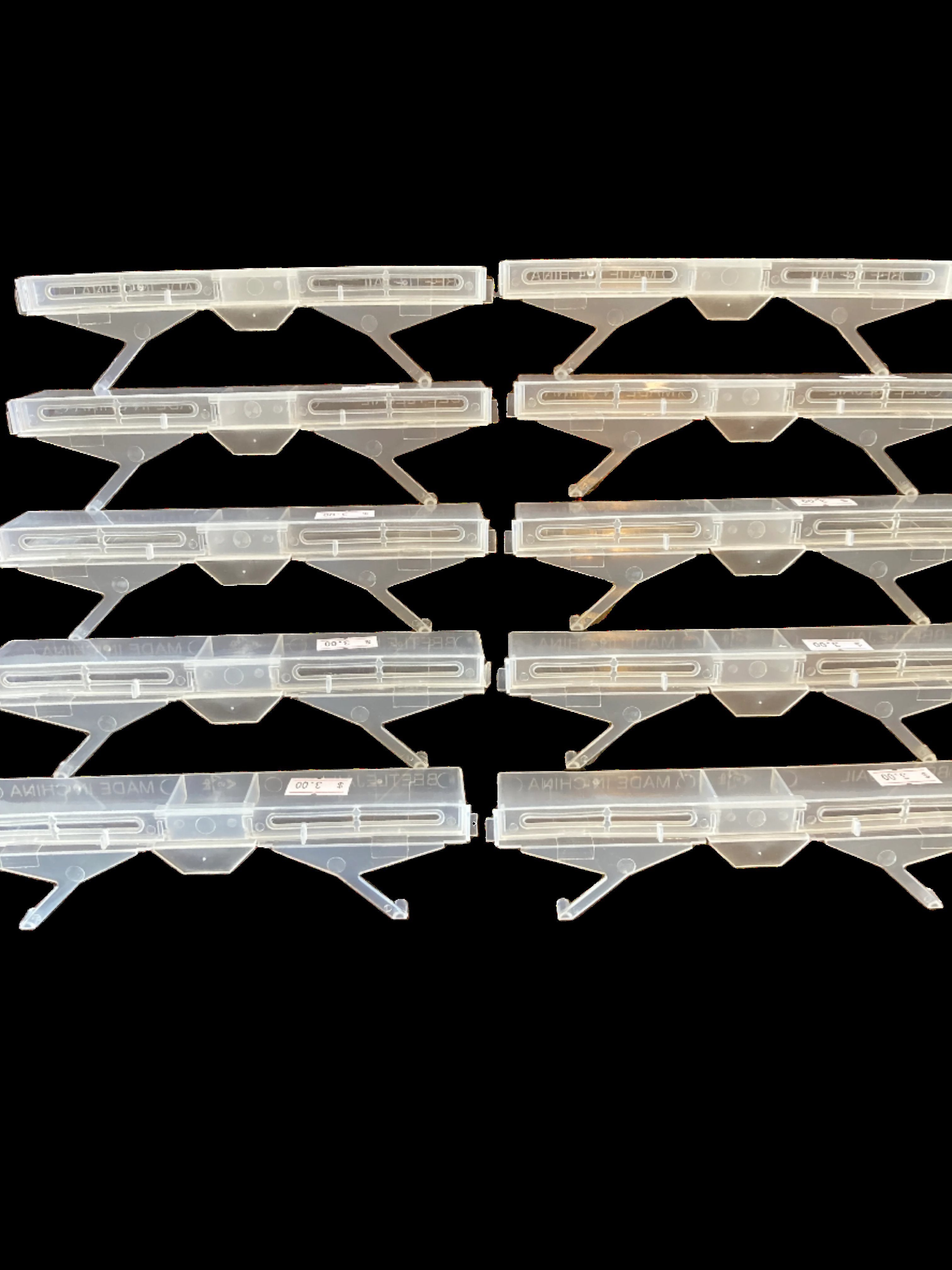 The traps may be placed anywhere in the hive.  If there is a high concentration of bees, during summer increase, the beetles will typically be pushed to the extremities of the hive, top and bottom corners.  Traps on the outside frames against the hive body are generally most effective.  In winter the beetles will stay as close to the cluster as the bees will allow.  So the traps may be more effective in the center area of the hive.  The traps are made from recyclable Polypropylene.