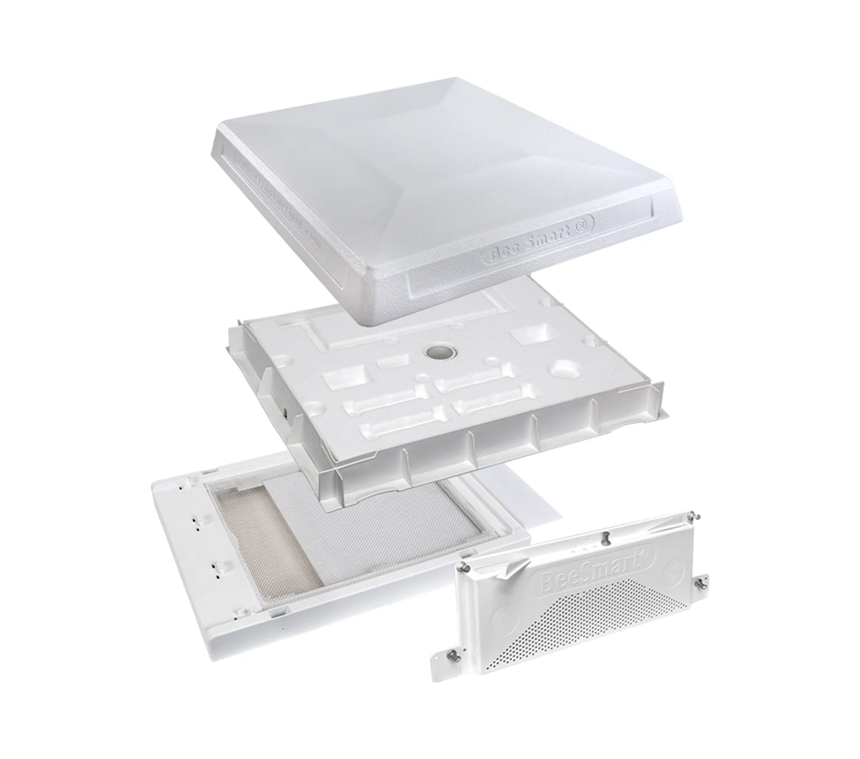 The Ultimate Quad Hive System is the total package of hive products packed with amazing features to guarantee happier colonies, healthier bees, more honey, and fewer losses. These exclusive designs are protected by patents and are perfect for 8-frame and 10-frame wooden ware. They come ready to use' so you don't need to worry about any assembly or painting. For a complete solution, you can also pair them with other Bee Smart Products.